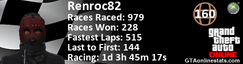 [URL=http://GTAonlinestats.com/showplayer/Renroc82][IMG]http://GTAonlinestats.com/racesignature/Renroc82/sig.png[/IMG][/URL]