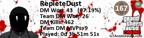 [URL=http://GTAonlinestats.com/showplayer/RepleteDust][IMG]http://GTAonlinestats.com/dmsignature/RepleteDust/sig.png[/IMG][/URL]