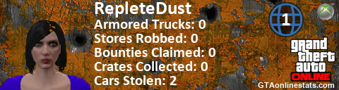 <a href="http://GTAonlinestats.com/showplayer/RepleteDust/2"><img src="http://GTAonlinestats.com/signature/RepleteDust/2/sig.png" alt="RepleteDust" border="0" /></a>