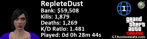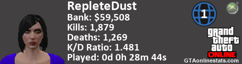 [URL=http://GTAonlinestats.com/showplayer/RepleteDust/2][IMG]http://GTAonlinestats.com/signature/RepleteDust/2/sig.png[/IMG][/URL]