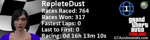 [URL=http://GTAonlinestats.com/showplayer/RepleteDust/2][IMG]http://GTAonlinestats.com/racesignature/RepleteDust/2/sig.png[/IMG][/URL]