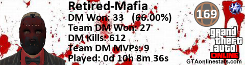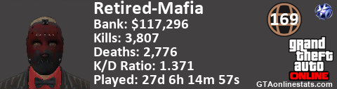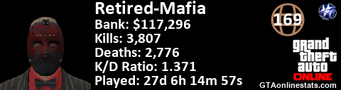 [URL=http://GTAonlinestats.com/showplayer/Retired-Mafia][IMG]http://GTAonlinestats.com/signature/Retired-Mafia/sig.png[/IMG][/URL]