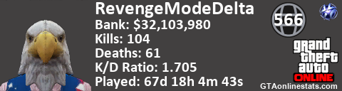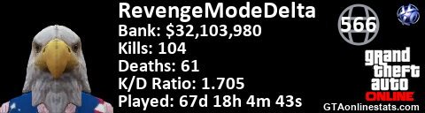 <a href="http://GTAonlinestats.com/showplayer/RevengeModeDelta"><img src="http://GTAonlinestats.com/dmsignature/RevengeModeDelta/sig.png" alt="RevengeModeDelta" border="0" /></a>