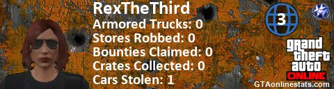 [URL=http://GTAonlinestats.com/showplayer/RexTheThird/3][IMG]http://GTAonlinestats.com/crimesignature/RexTheThird/3/sig.png[/IMG][/URL]
