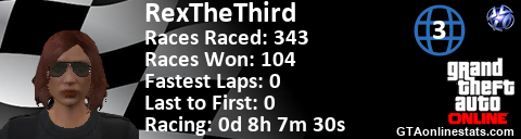 [URL=http://GTAonlinestats.com/showplayer/RexTheThird/3][IMG]http://GTAonlinestats.com/racesignature/RexTheThird/3/sig.png[/IMG][/URL]