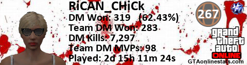 [URL=http://GTAonlinestats.com/showplayer/RiCAN_CHiCk][IMG]http://GTAonlinestats.com/dmsignature/RiCAN_CHiCk/sig.png[/IMG][/URL]