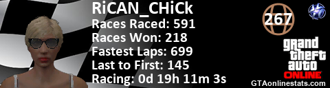 <a href="http://GTAonlinestats.com/showplayer/RiCAN_CHiCk"><img src="http://GTAonlinestats.com/racesignature/RiCAN_CHiCk/sig.png" alt="RiCAN_CHiCk" border="0" /></a>