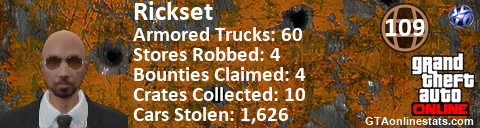 [URL=http://GTAonlinestats.com/showplayer/Rickset/2][IMG]http://GTAonlinestats.com/crimesignature/Rickset/2/sig.png[/IMG][/URL]