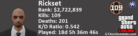 <a href="http://GTAonlinestats.com/showplayer/Rickset/2"><img src="http://GTAonlinestats.com/signature/Rickset/2/sig.png" alt="Rickset" border="0" /></a>