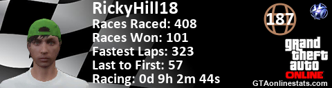 <a href="http://GTAonlinestats.com/showplayer/RickyHill18"><img src="http://GTAonlinestats.com/racesignature/RickyHill18/sig.png" alt="RickyHill18" border="0" /></a>
