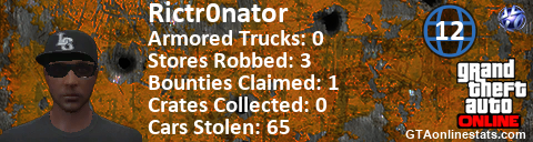 <a href="http://GTAonlinestats.com/showplayer/Rictr0nator"><img src="http://GTAonlinestats.com/dmsignature/Rictr0nator/sig.png" alt="Rictr0nator" border="0" /></a>