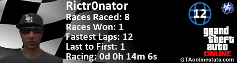<a href="http://GTAonlinestats.com/showplayer/Rictr0nator"><img src="http://GTAonlinestats.com/racesignature/Rictr0nator/sig.png" alt="Rictr0nator" border="0" /></a>