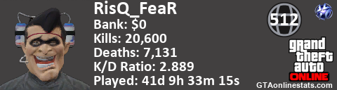 <a href="http://GTAonlinestats.com/showplayer/RisQ_FeaR"><img src="http://GTAonlinestats.com/signature/RisQ_FeaR/sig.png" alt="RisQ_FeaR" border="0" /></a>