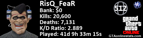 <a href="http://GTAonlinestats.com/showplayer/RisQ_FeaR"><img src="http://GTAonlinestats.com/dmsignature/RisQ_FeaR/sig.png" alt="RisQ_FeaR" border="0" /></a>