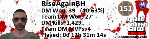 <a href="http://GTAonlinestats.com/showplayer/RiseAgainBH"><img src="http://GTAonlinestats.com/dmsignature/RiseAgainBH/sig.png" alt="RiseAgainBH" border="0" /></a>