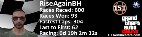 <a href="http://GTAonlinestats.com/showplayer/RiseAgainBH"><img src="http://GTAonlinestats.com/racesignature/RiseAgainBH/sig.png" alt="RiseAgainBH" border="0" /></a>