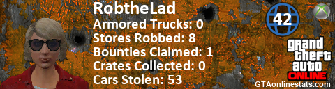 [URL=http://GTAonlinestats.com/showplayer/RobtheLad/3][IMG]http://GTAonlinestats.com/crimesignature/RobtheLad/3/sig.png[/IMG][/URL]