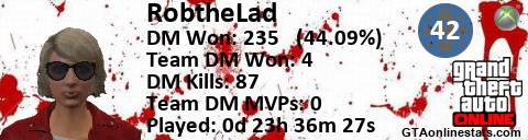[URL=http://GTAonlinestats.com/showplayer/RobtheLad/3][IMG]http://GTAonlinestats.com/dmsignature/RobtheLad/3/sig.png[/IMG][/URL]