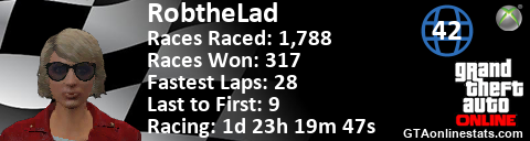 [URL=http://GTAonlinestats.com/showplayer/RobtheLad/3][IMG]http://GTAonlinestats.com/racesignature/RobtheLad/3/sig.png[/IMG][/URL]