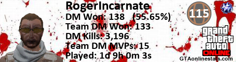 [URL=http://GTAonlinestats.com/showplayer/RogerIncarnate][IMG]http://GTAonlinestats.com/dmsignature/RogerIncarnate/sig.png[/IMG][/URL]
