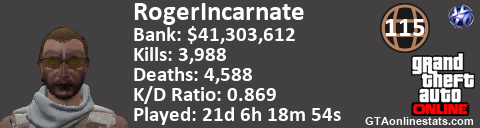 <a href="http://GTAonlinestats.com/showplayer/RogerIncarnate"><img src="http://GTAonlinestats.com/dmsignature/RogerIncarnate/sig.png" alt="RogerIncarnate" border="0" /></a>