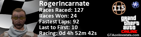 [URL=http://GTAonlinestats.com/showplayer/RogerIncarnate][IMG]http://GTAonlinestats.com/racesignature/RogerIncarnate/sig.png[/IMG][/URL]