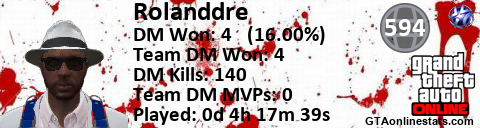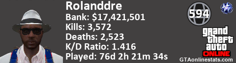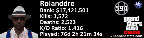 <a href="http://GTAonlinestats.com/showplayer/Rolanddre"><img src="http://GTAonlinestats.com/randomsignature/Rolanddre/sig.png" alt="Rolanddre" border="0" /></a>