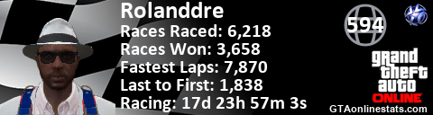 <a href="http://GTAonlinestats.com/showplayer/Rolanddre"><img src="http://GTAonlinestats.com/racesignature/Rolanddre/sig.png" alt="Rolanddre" border="0" /></a>