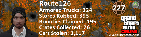 <a href="http://GTAonlinestats.com/showplayer/Route126"><img src="http://GTAonlinestats.com/crimesignature/Route126/sig.png" alt="Route126" border="0" /></a>