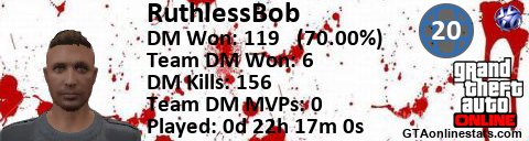 [URL=http://GTAonlinestats.com/showplayer/RuthlessBob/3][IMG]http://GTAonlinestats.com/dmsignature/RuthlessBob/3/sig.png[/IMG][/URL]