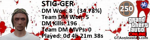 [URL=http://GTAonlinestats.com/showplayer/STIG-GER][IMG]http://GTAonlinestats.com/dmsignature/STIG-GER/sig.png[/IMG][/URL]