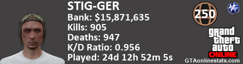 [URL=http://GTAonlinestats.com/showplayer/STIG-GER][IMG]http://GTAonlinestats.com/greysignature/STIG-GER/sig.png[/IMG][/URL]
