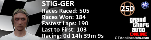 [URL=http://GTAonlinestats.com/showplayer/STIG-GER][IMG]http://GTAonlinestats.com/racesignature/STIG-GER/sig.png[/IMG][/URL]