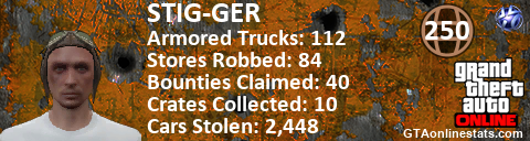 [URL=http://GTAonlinestats.com/showplayer/STIG-GER][IMG]http://GTAonlinestats.com/randomsignature/STIG-GER/sig.png[/IMG][/URL]