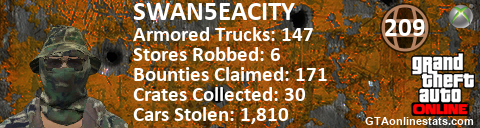 [URL=http://GTAonlinestats.com/showplayer/SWAN5EACITY][IMG]http://GTAonlinestats.com/greysignature/SWAN5EACITY/sig.png[/IMG][/URL]