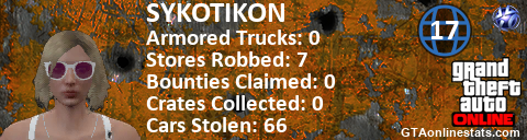 [URL=http://GTAonlinestats.com/showplayer/SYKOTIKON/2][IMG]http://GTAonlinestats.com/crimesignature/SYKOTIKON/2/sig.png[/IMG][/URL]