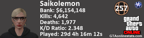 <a href="http://GTAonlinestats.com/showplayer/Saikolemon"><img src="http://GTAonlinestats.com/dmsignature/Saikolemon/sig.png" alt="Saikolemon" border="0" /></a>