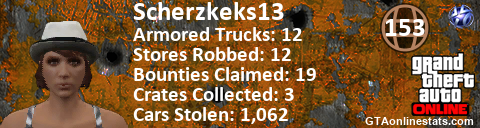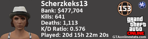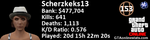 <a href="http://GTAonlinestats.com/showplayer/Scherzkeks13"><img src="http://GTAonlinestats.com/signature/Scherzkeks13/sig.png" alt="Scherzkeks13" border="0" /></a>