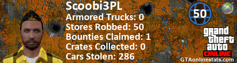 <a href="http://GTAonlinestats.com/showplayer/Scoobi3PL"><img src="http://GTAonlinestats.com/signature/Scoobi3PL/sig.png" alt="Scoobi3PL" border="0" /></a>
