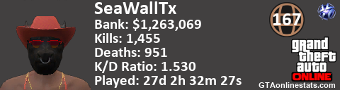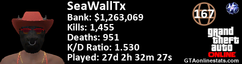 [URL=http://GTAonlinestats.com/showplayer/SeaWallTx][IMG]http://GTAonlinestats.com/dmsignature/SeaWallTx/sig.png[/IMG][/URL]