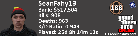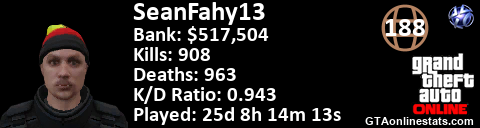 <a href="http://GTAonlinestats.com/showplayer/SeanFahy13"><img src="http://GTAonlinestats.com/signature/SeanFahy13/sig.png" alt="SeanFahy13" border="0" /></a>