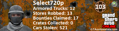 [URL=http://GTAonlinestats.com/showplayer/Select720p][IMG]http://GTAonlinestats.com/crimesignature/Select720p/sig.png[/IMG][/URL]