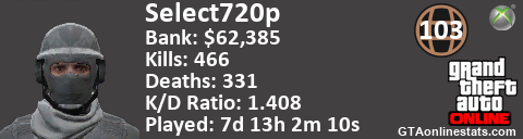 [URL=http://GTAonlinestats.com/showplayer/Select720p][IMG]http://GTAonlinestats.com/dmsignature/Select720p/sig.png[/IMG][/URL]