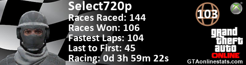 [URL=http://GTAonlinestats.com/showplayer/Select720p][IMG]http://GTAonlinestats.com/racesignature/Select720p/sig.png[/IMG][/URL]