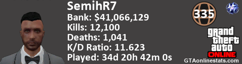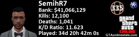 [URL=http://GTAonlinestats.com/showplayer/SemihR7][IMG]http://GTAonlinestats.com/dmsignature/SemihR7/sig.png[/IMG][/URL]