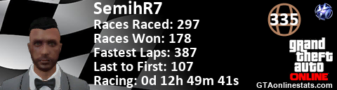 [URL=http://GTAonlinestats.com/showplayer/SemihR7][IMG]http://GTAonlinestats.com/racesignature/SemihR7/sig.png[/IMG][/URL]