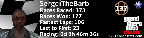[URL=http://GTAonlinestats.com/showplayer/SergeiTheBarb/2][IMG]http://GTAonlinestats.com/racesignature/SergeiTheBarb/2/sig.png[/IMG][/URL]