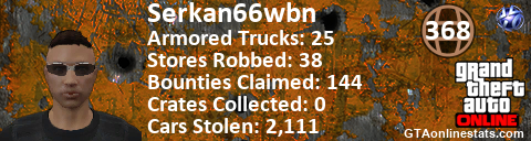 [URL=http://GTAonlinestats.com/showplayer/Serkan66wbn][IMG]http://GTAonlinestats.com/crimesignature/Serkan66wbn/sig.png[/IMG][/URL]