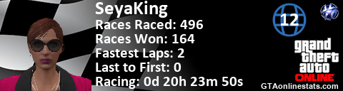 <a href="http://GTAonlinestats.com/showplayer/SeyaKing/2"><img src="http://GTAonlinestats.com/racesignature/SeyaKing/2/sig.png" alt="SeyaKing" border="0" /></a>