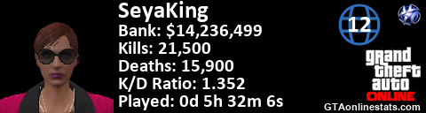 <a href="http://GTAonlinestats.com/showplayer/SeyaKing/2"><img src="http://GTAonlinestats.com/greysignature/SeyaKing/2/sig.png" alt="SeyaKing" border="0" /></a>